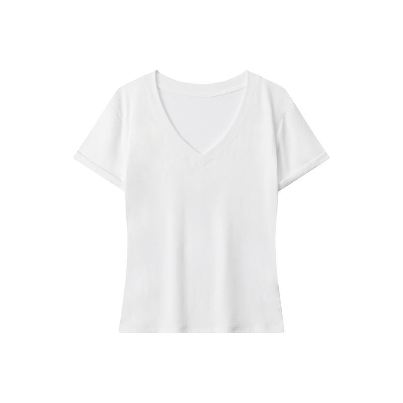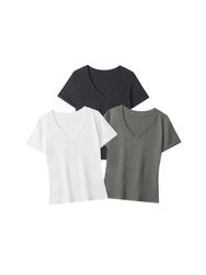 Features a classic v-neck and short sleeves for casual and effortless style. Super soft cotton modal jersey with added stretch for all-day ease and comfort. This versatile t-shirt is a classic wardrobe essential, perfect layered under your favorite jacket or cardigan, or wear on its own for casual, everyday style.