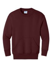 The youth version of this popular cozy crew with a hoodie-style front pocket.