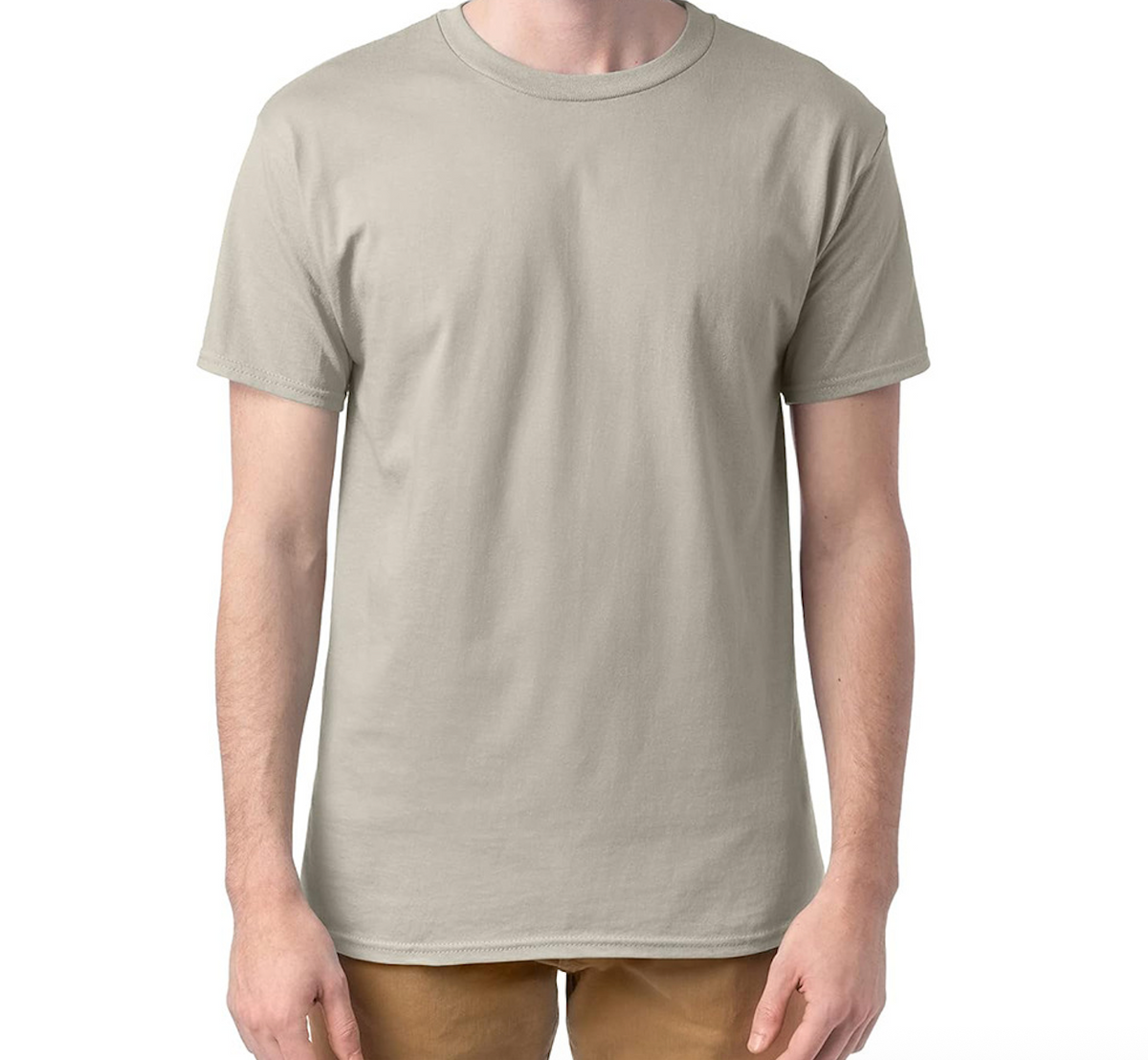 100% cotton midweight fabric makes this a shirt you can wear all year long. Light steel colors are a cotton/polyester blend. This cotton T-shirt features shoulder-to-shoulder taping and double-needle stitching for extra sturdiness at stress points. A full cut offers a roomier fit in men's tee shirts that are built for all-day comfort.